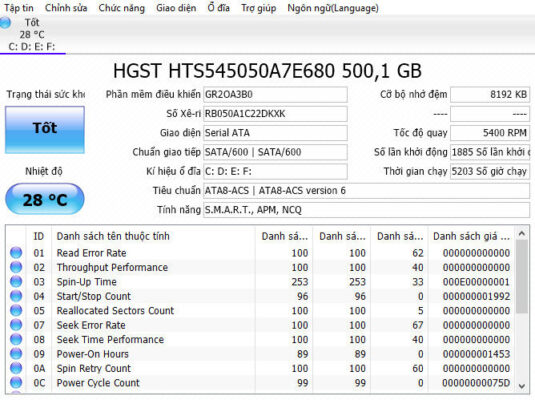 Phần mềm kiểm tra ổ cứng CrystalDiskInfo 9.7.2