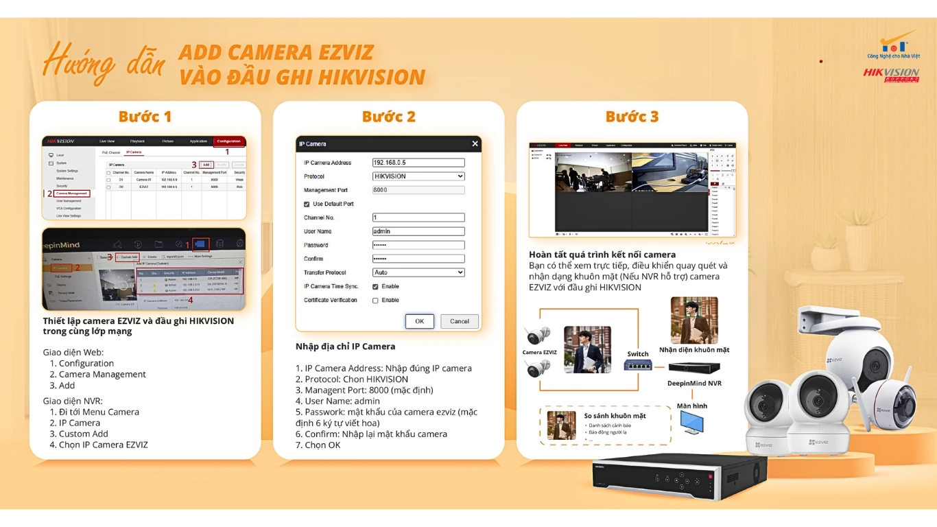 Việc sử dụng mạng Wi-Fi có sẵn tại nhà để kết nối camera Wi-Fi với đầu ghi hình (NVR/DVR) rất tiện lợi vì không cần đi dây mạng, nhưng đồng thời cũng tiềm ẩn nhiều rủi ro về độ ổn định. Dưới đây là các lưu ý quan trọng nhất khi add camera Wi-Fi vào […]