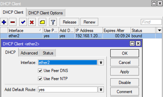 Thay vào đó, mục Gateway phải là Gateway của mạng LAN đang cấp IP xuống cổng Ether2.