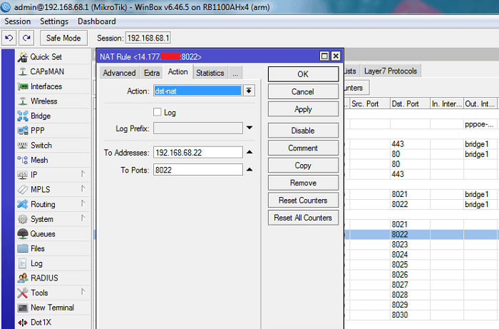 - Dst. Address và Dst. Port là địa chỉ IP và port cần NAT